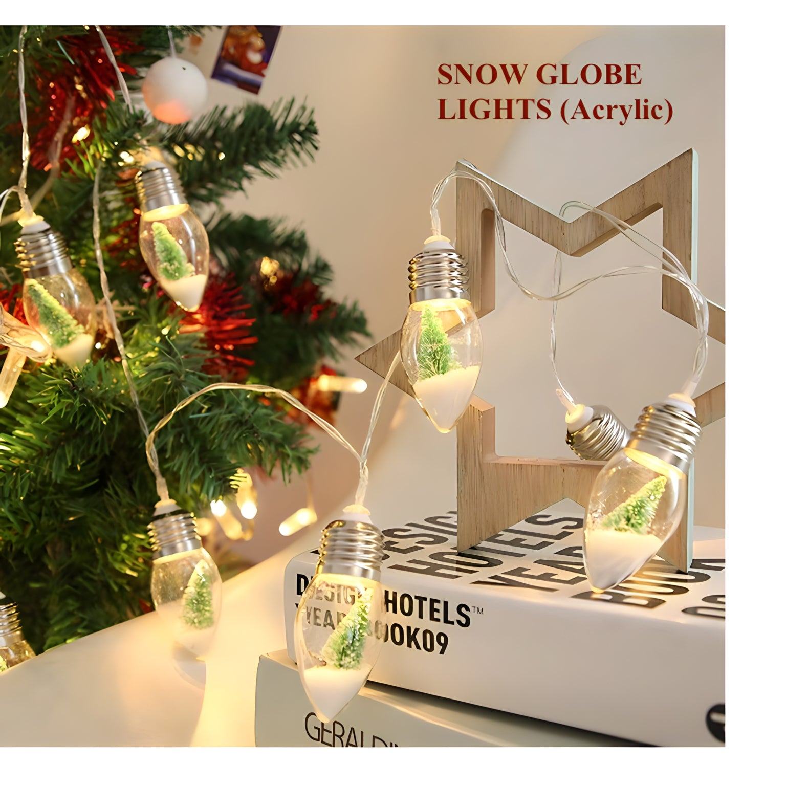 - ❄️Snow Globe Lights made of acrylic has christmas tree and snow