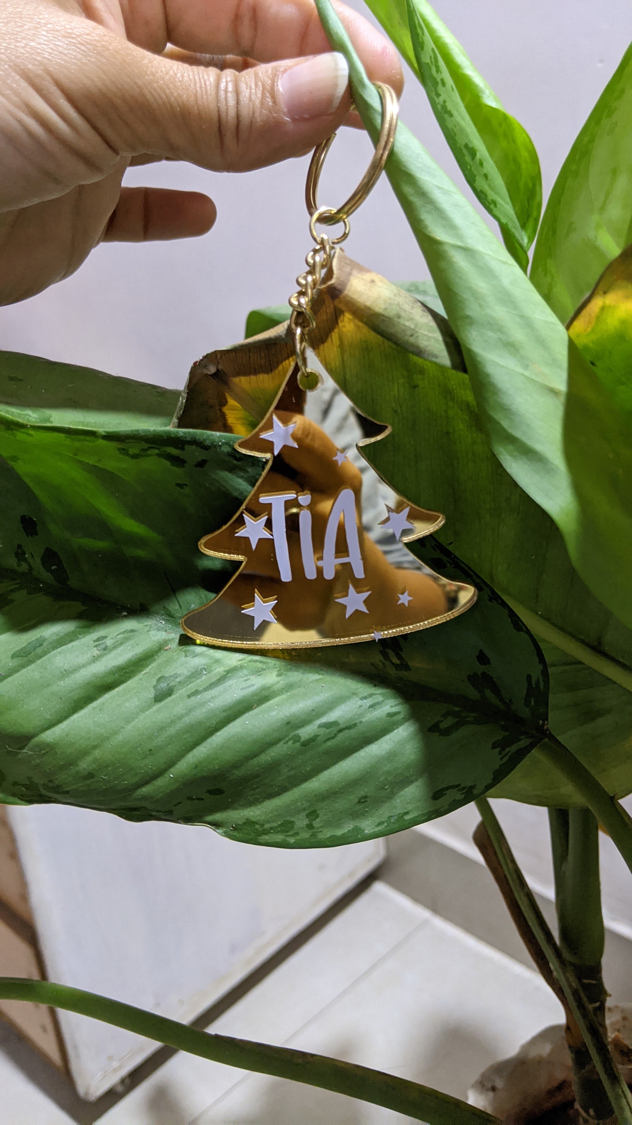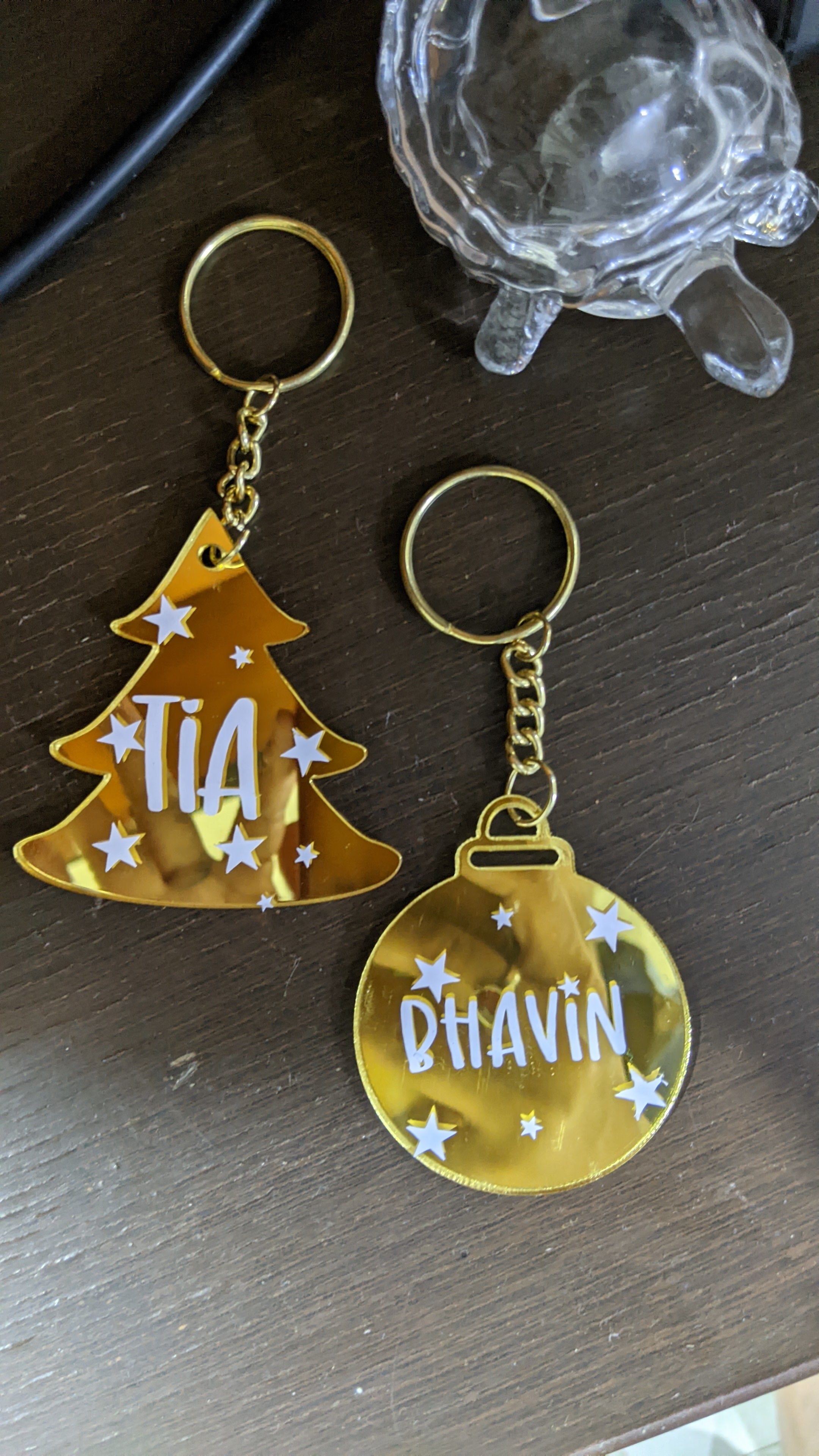 - 🎄 Festive Golden Glow: Made with acrylic in a stunning golden finish, these keychains shine bright like holiday lights.
