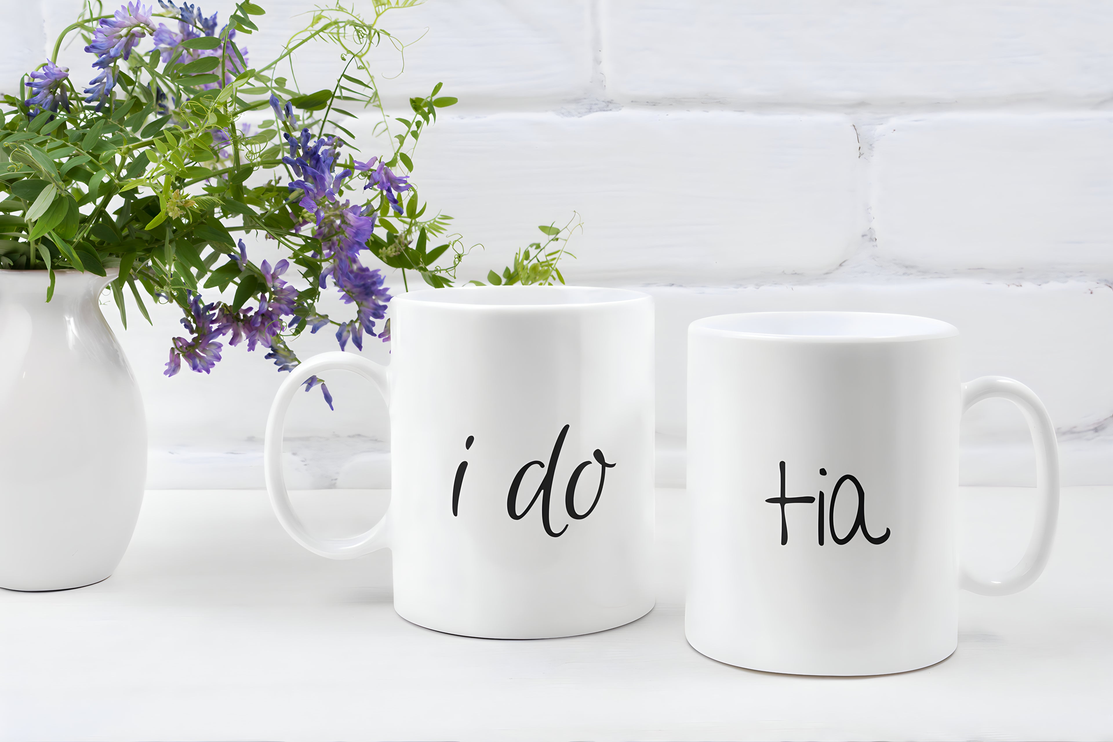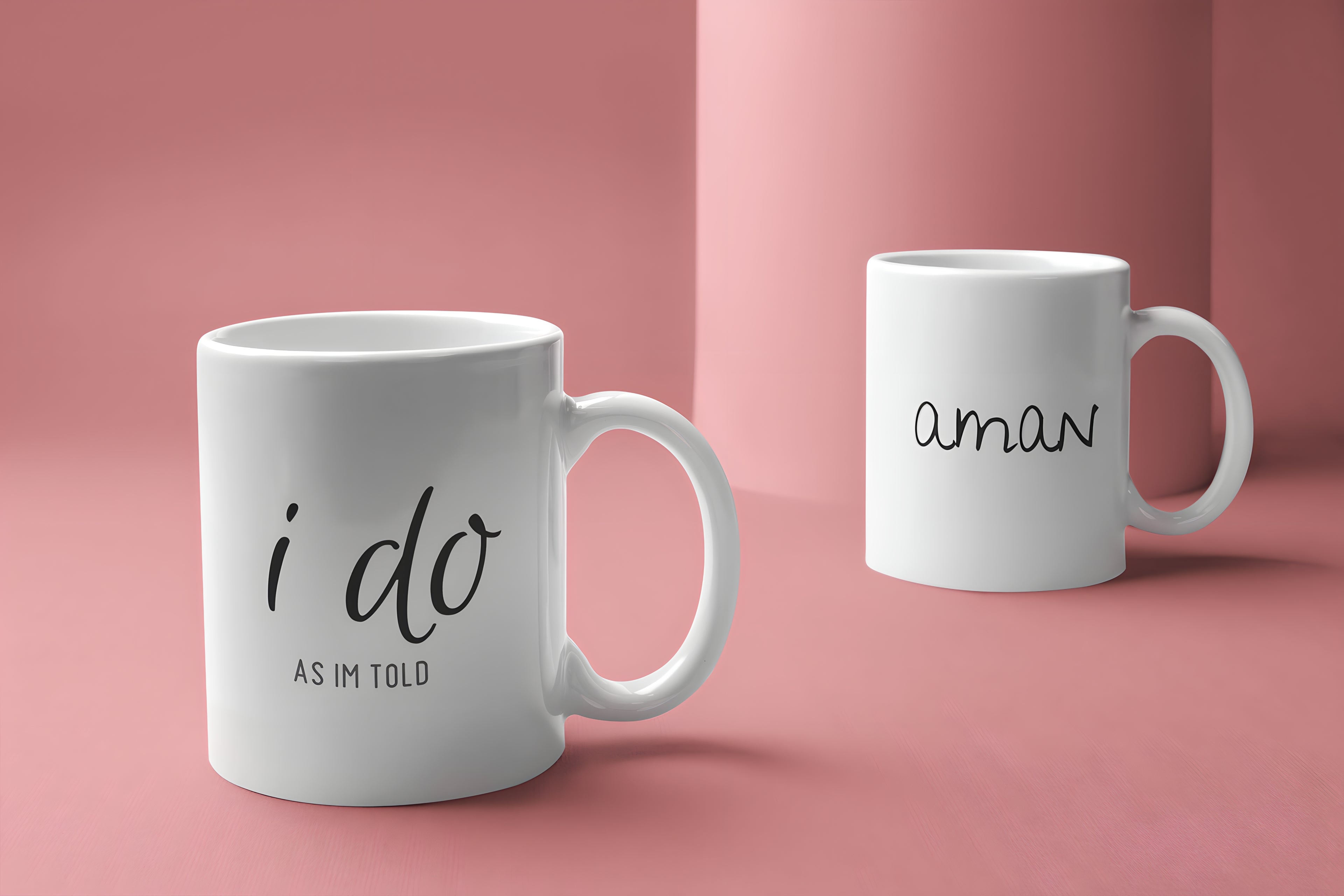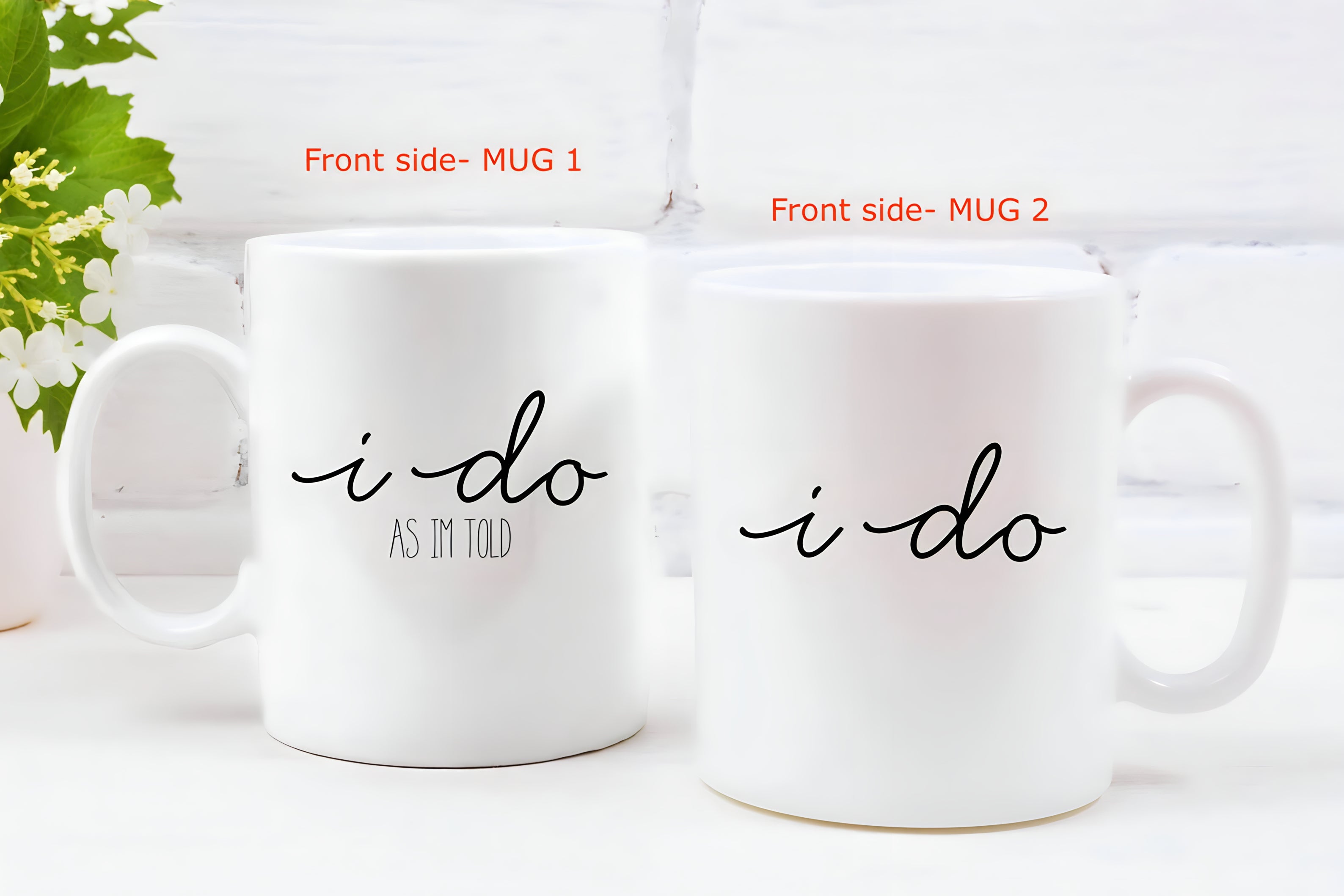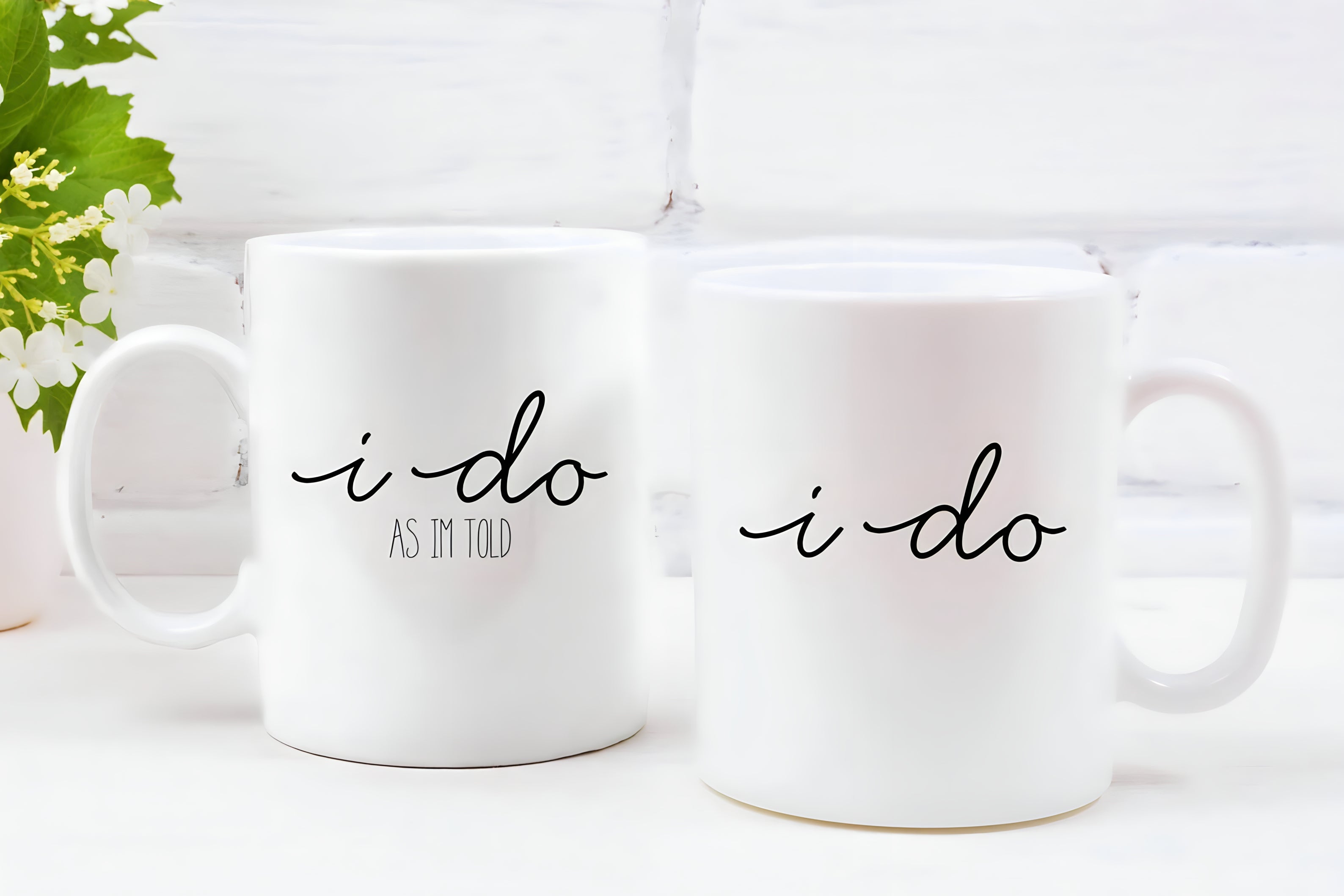 - Funny Couple Phrases: Mug 1: “I Do” – for the proud partner. Mug 2: “I Do As I’m Told” – for the playful sidekick.