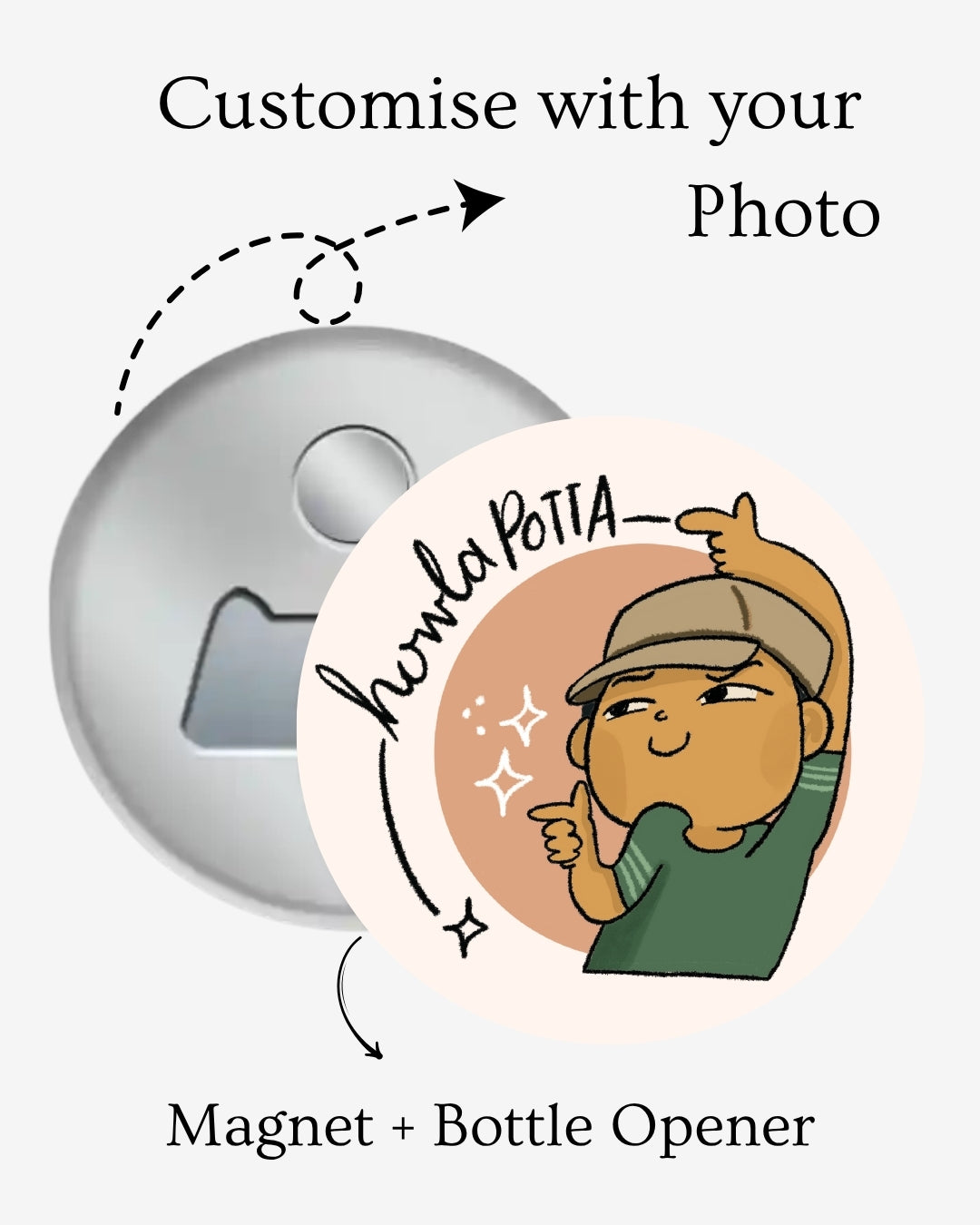 - Custom Howla Potta- Badge, Fridge Magnet or Opener designed in India
