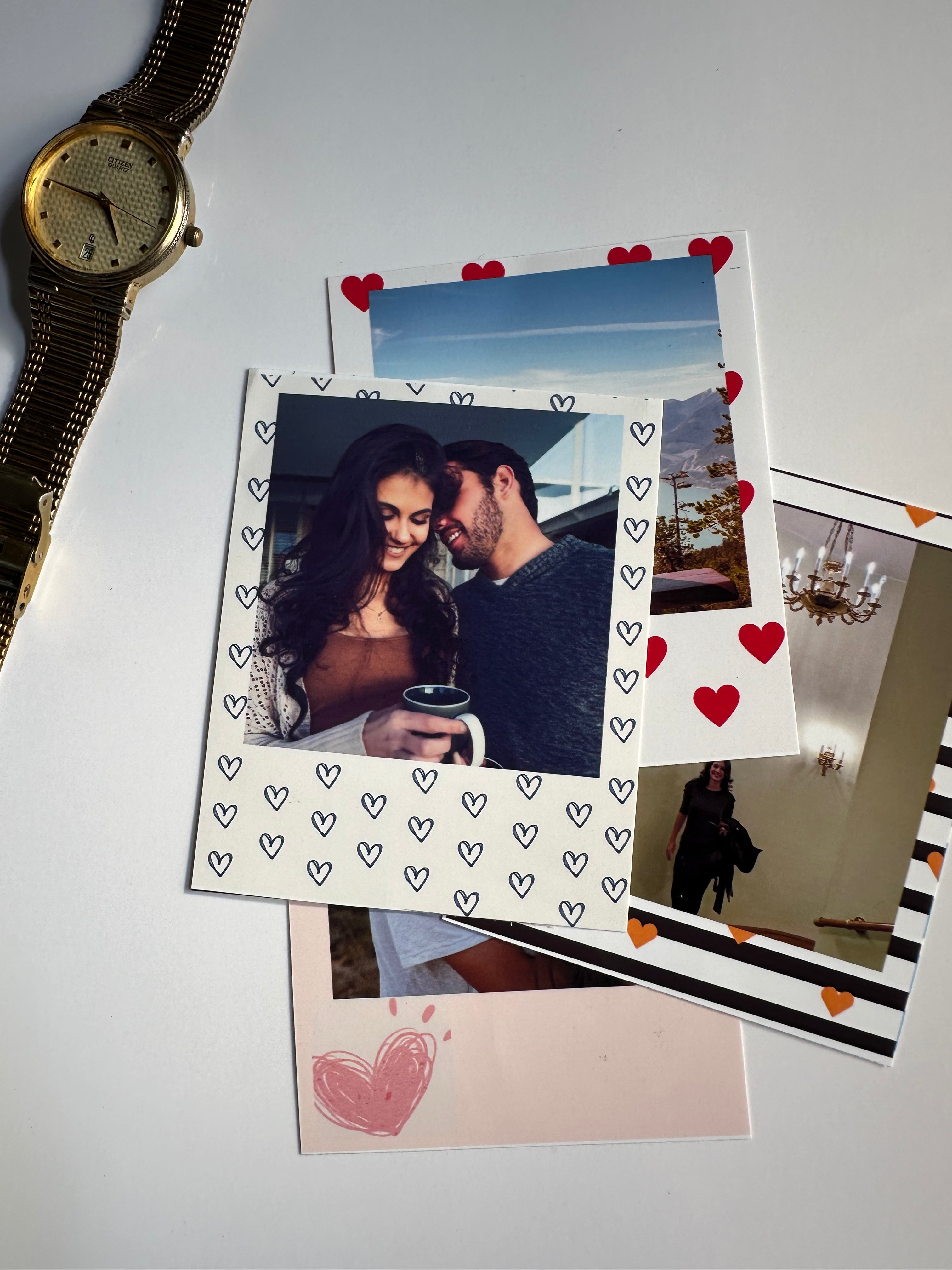 Show your love with our Heartfelt Moments Polaroid prints. Framed with a delicate heart-shaped border, these prints are perfect for preserving romantic memories, family portraits, and heartfelt moments. Relive the tender and loving moments that make life special.