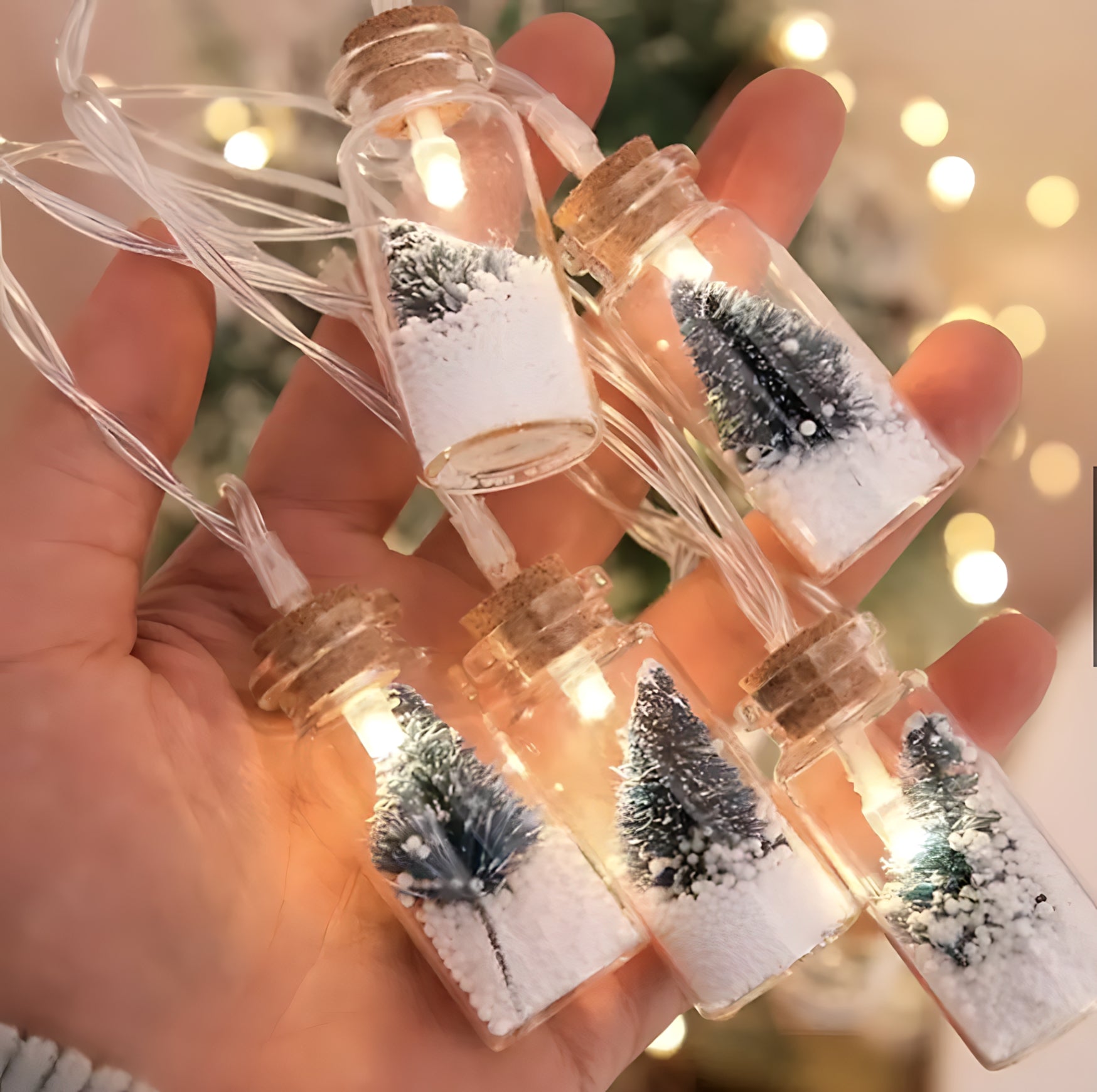 - ✨ North Pole-Inspired Design: Glass jars filled with snow and a tiny Christmas tree.