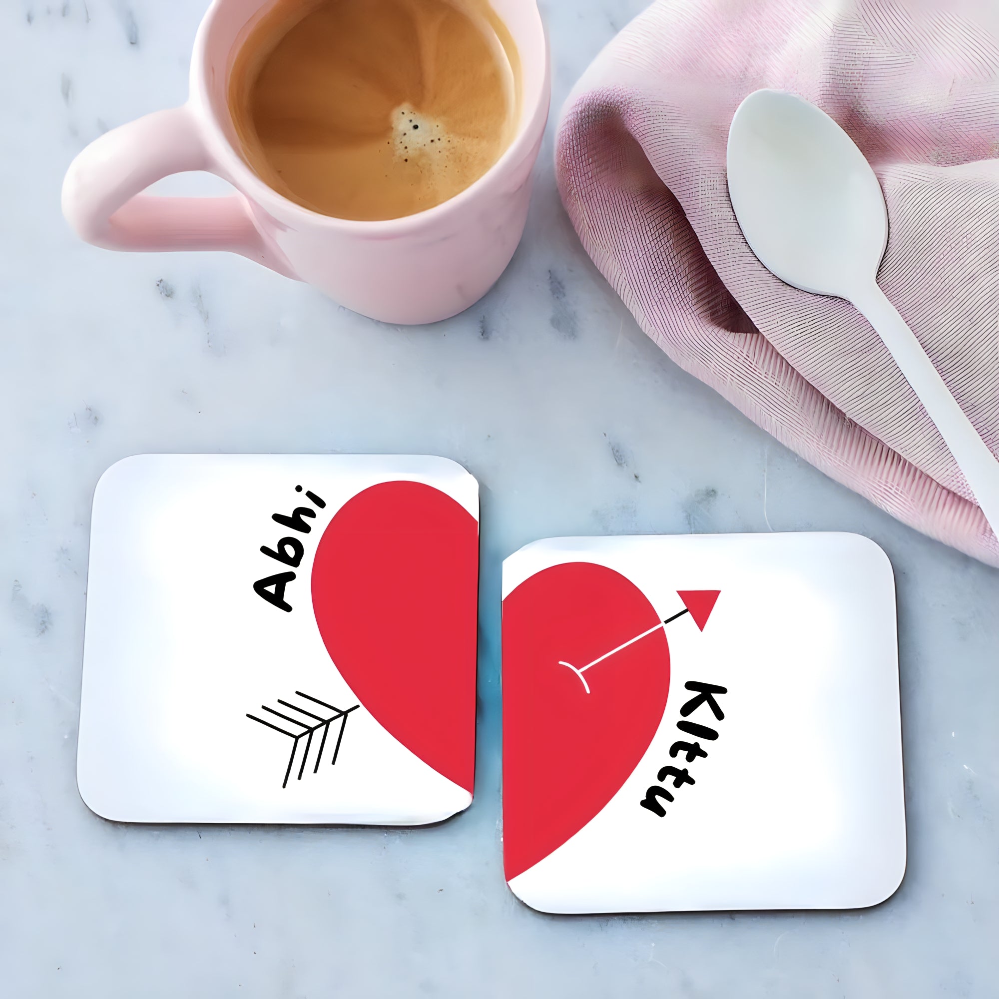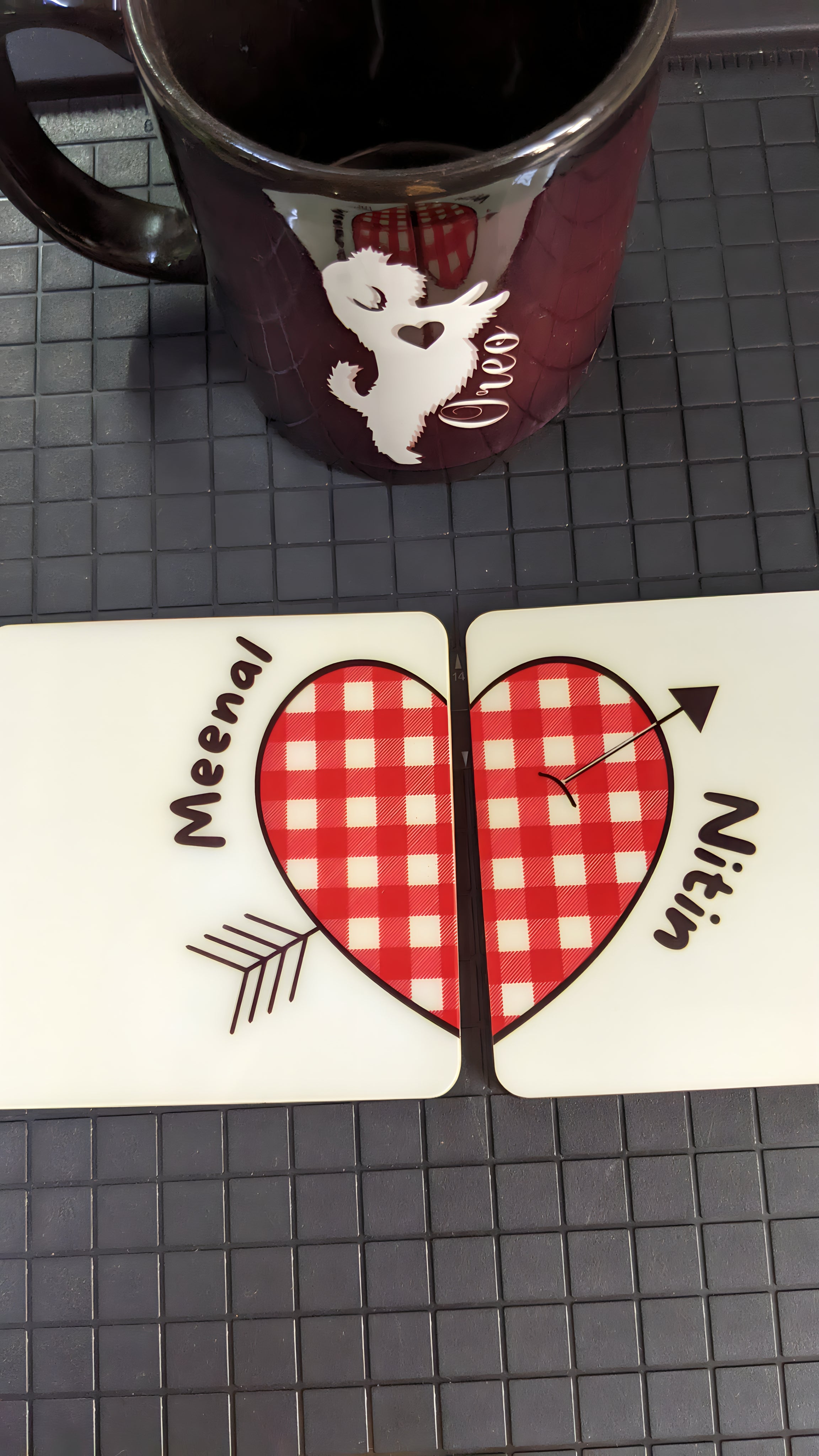 These coasters are all about togetherness! Each coaster features one half of a heart and a name, so when placed together, they form a complete heart—just like you and your boo!