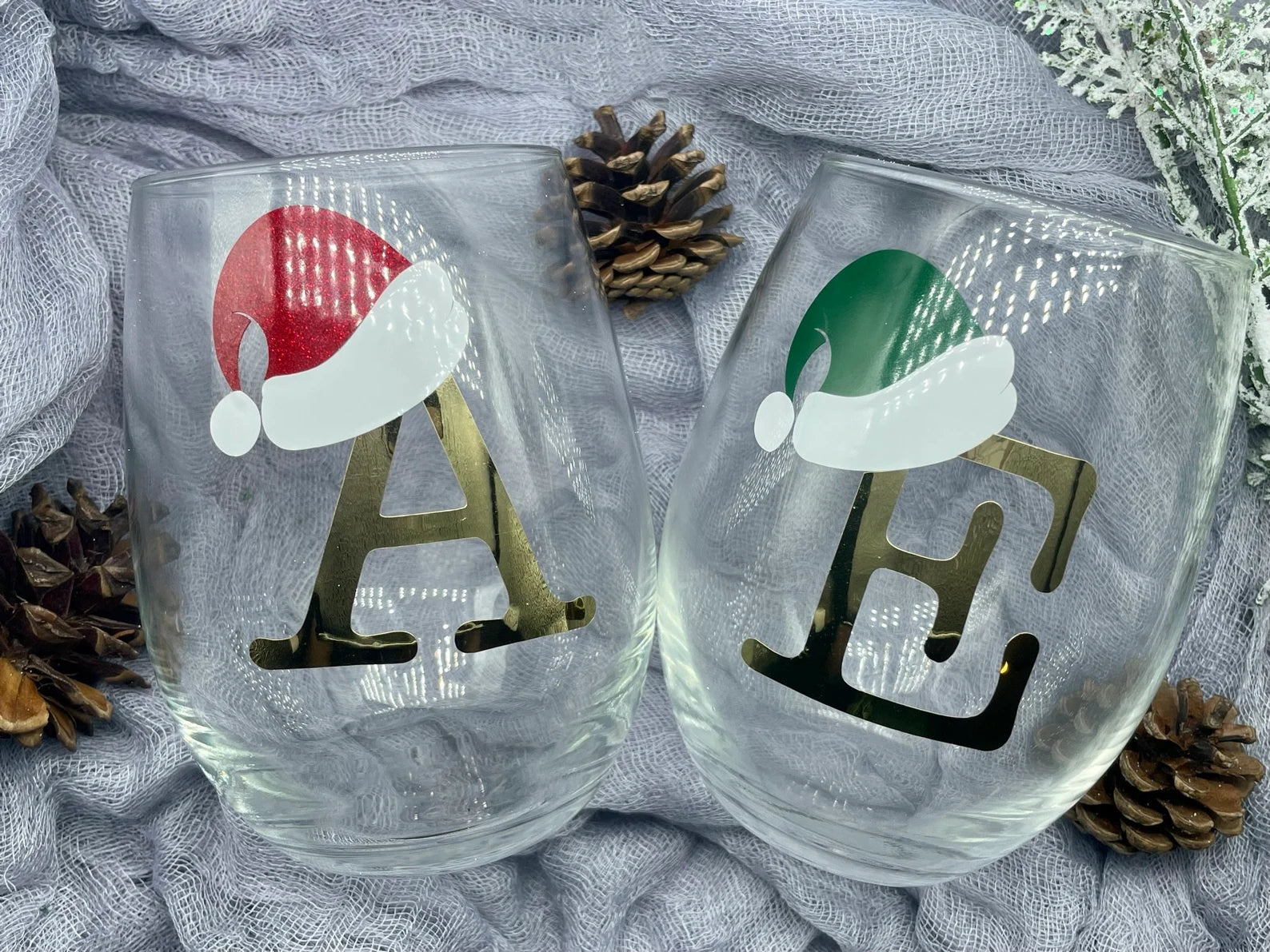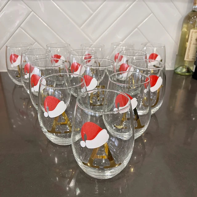 - Custom Alphabet Design: Personalize each wine glass with your chosen initial, complete with a delightful Santa hat for a festive flair.