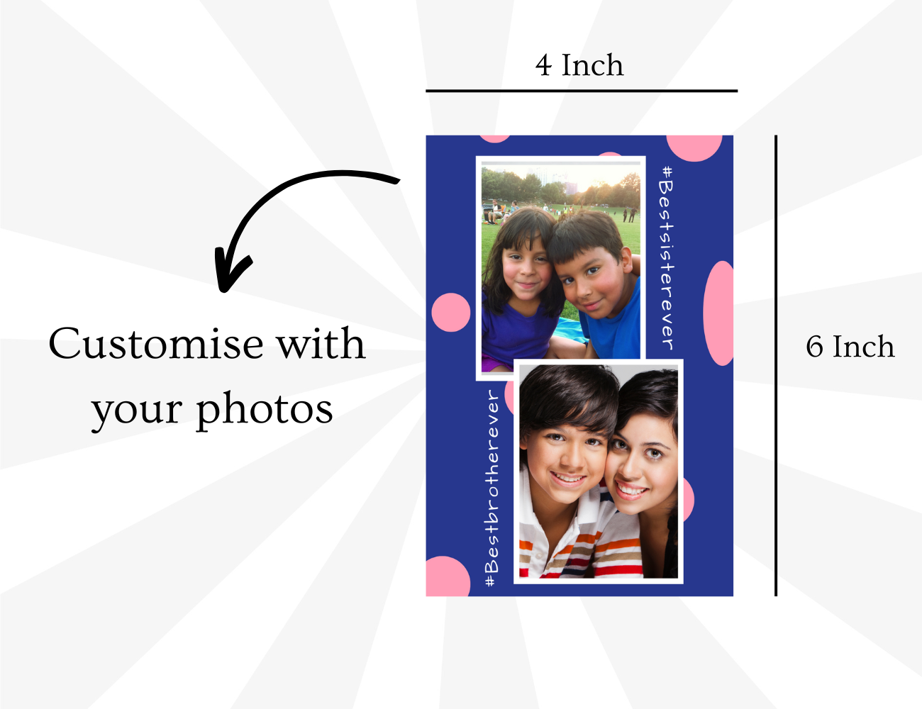 Celebrate the rollercoaster ride of sibling love this Rakshabandhan with our personalized photo magnets. From cherished memories to hilarious sibling shenanigans, these magnets capture the essence of your unique bond. Create a gallery of love, laughter, and occasional sibling fights that will brighten up your refrigerator and warm your heart. Our magnets are not just magnets; they are tiny windows into the incredible journey you've shared. From mischievous childhood pranks to heartwarming family vacations, these magnets will bring a smile to your face every time you see them on your refrigerator.