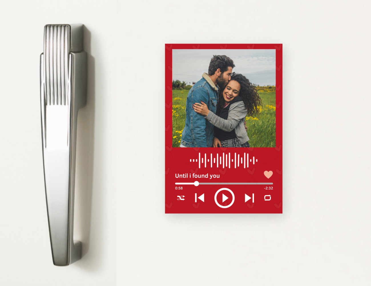 Spotify Love Magnets help relive special moments by featuring a song that holds significance and a photo that captures a cherished memory. Every time you scan the code and listen to the song, you'll be reminded of the special occasion and the love it represents.
