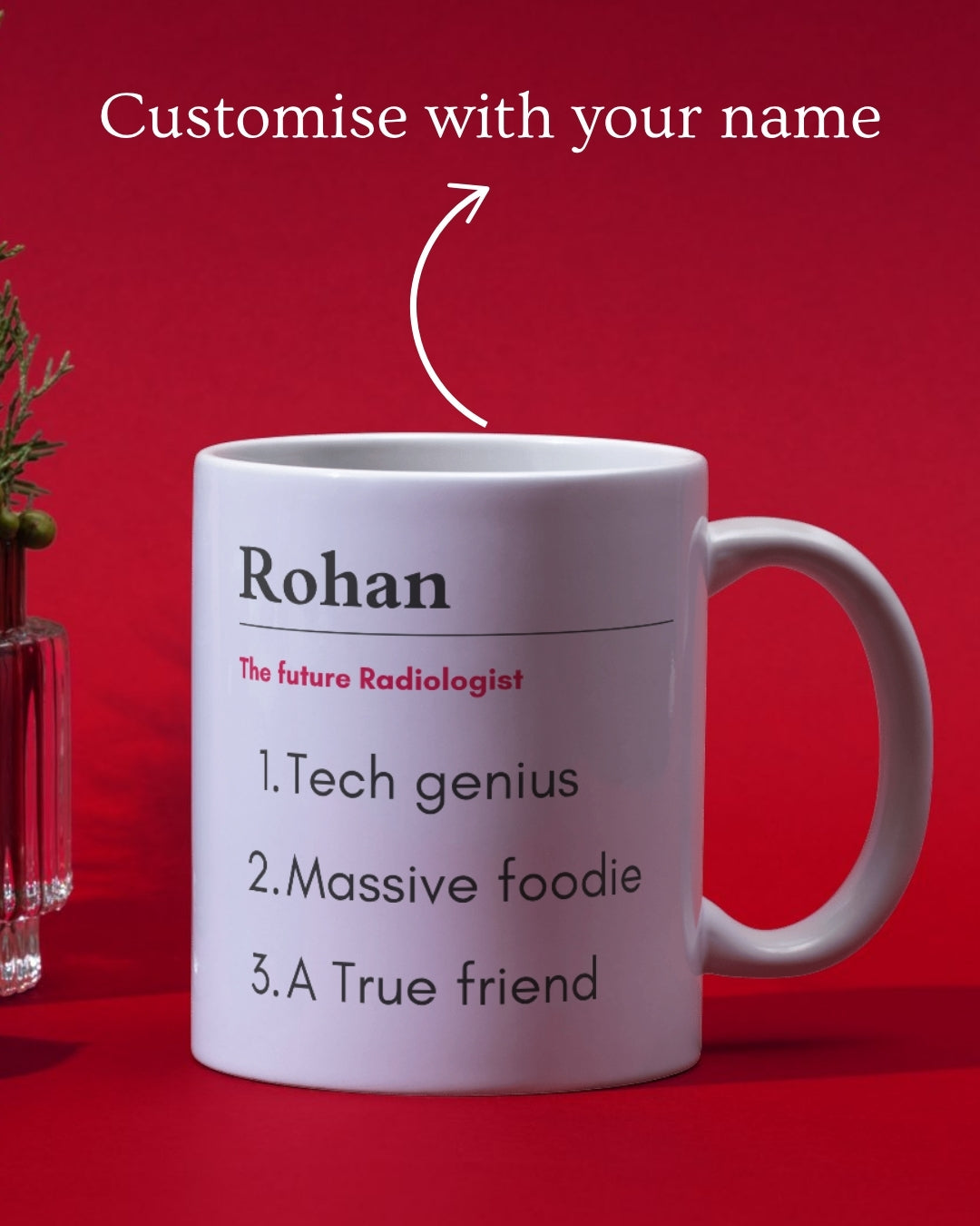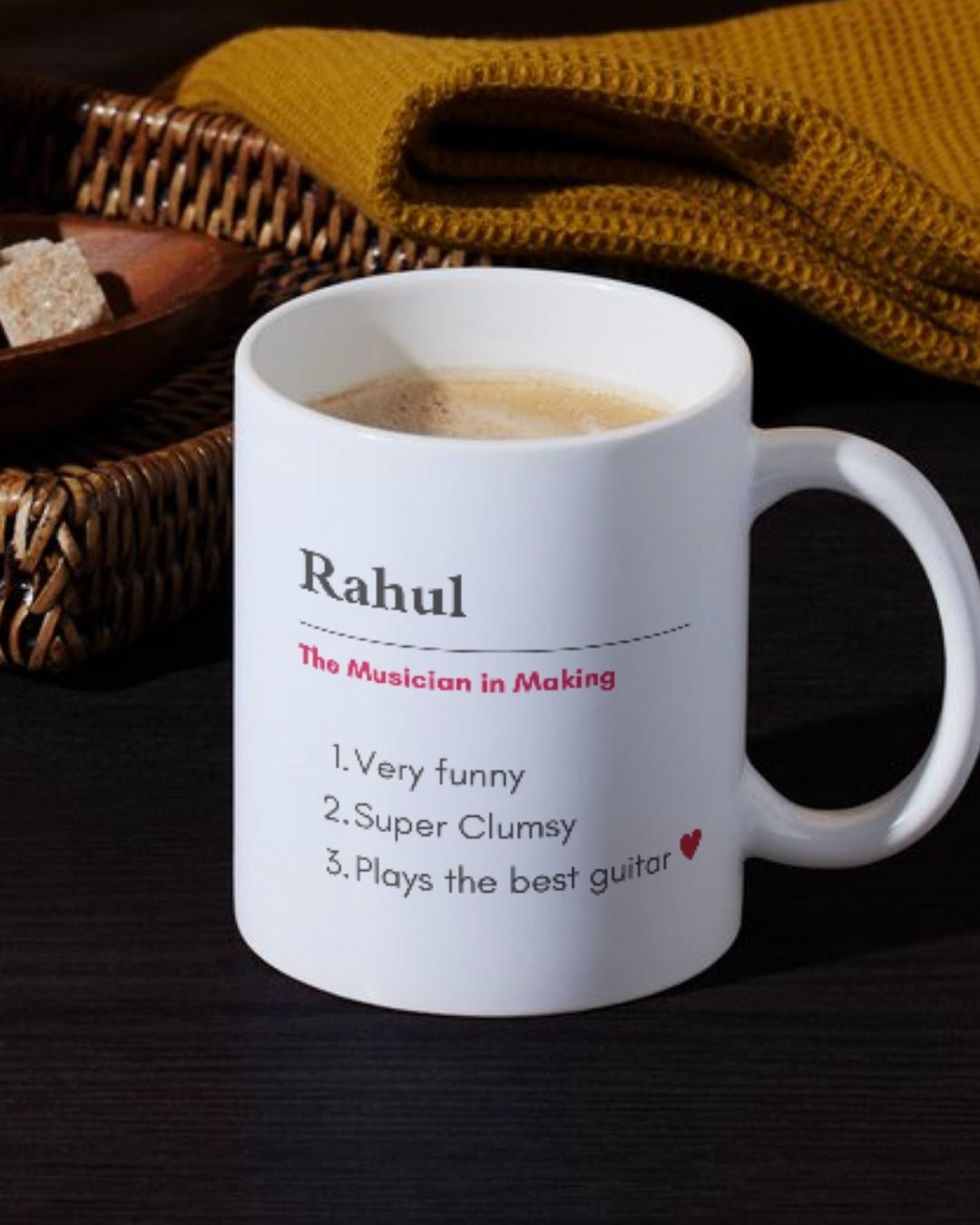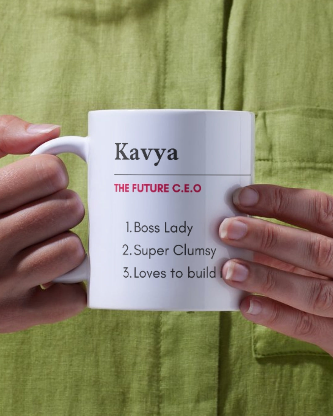 - Custom Name Definition Mug – Add your name, a creative or professional tagline, and a fun or inspiring meaning that reflects your personality or passion.